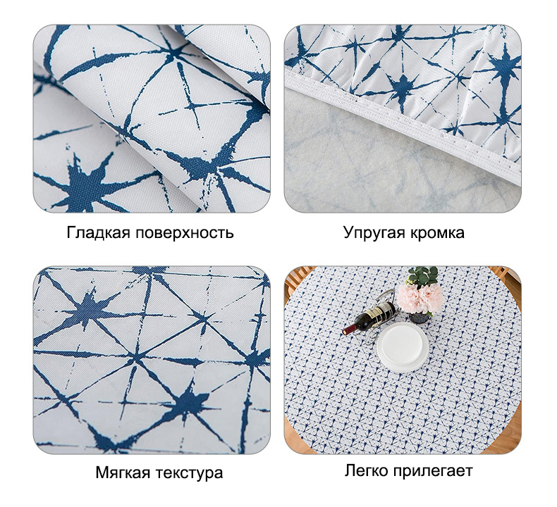 Это круглое ПВХ-покрывало с голубыми стрелками водонепроницаемое и маслоотталкивающее, достаточно протереть, стирка не требуется. Гибкое, износостойкое, не мнется и не деформируется, подходит для домашних круглых столов и баров кафе. Стильный принт добавляет энергии, идеальный выбор для встреч и отдыха.
