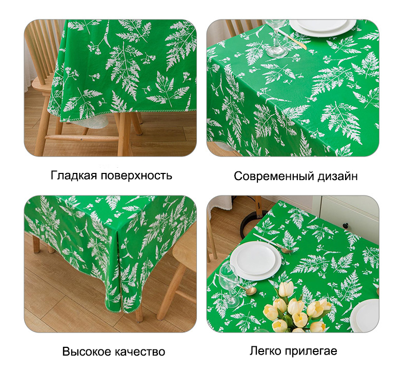 Это прямоугольное зеленое ПВХ-покрывало с листовым узором изготовлено из высококачественного ПВХ, водонепроницаемое, маслоотталкивающее и царапинопрочное. Загрязнения легко удалить протиркой, уход максимально удобный. Светлый зеленый тон с естественным листовым узором создает лесную атмосферу, прямоугольная форма подходит для большинства столов, ровные края с тонкой обработкой, сочетает защиту стола и декор, универсально для гостиной, столовой и балкона.